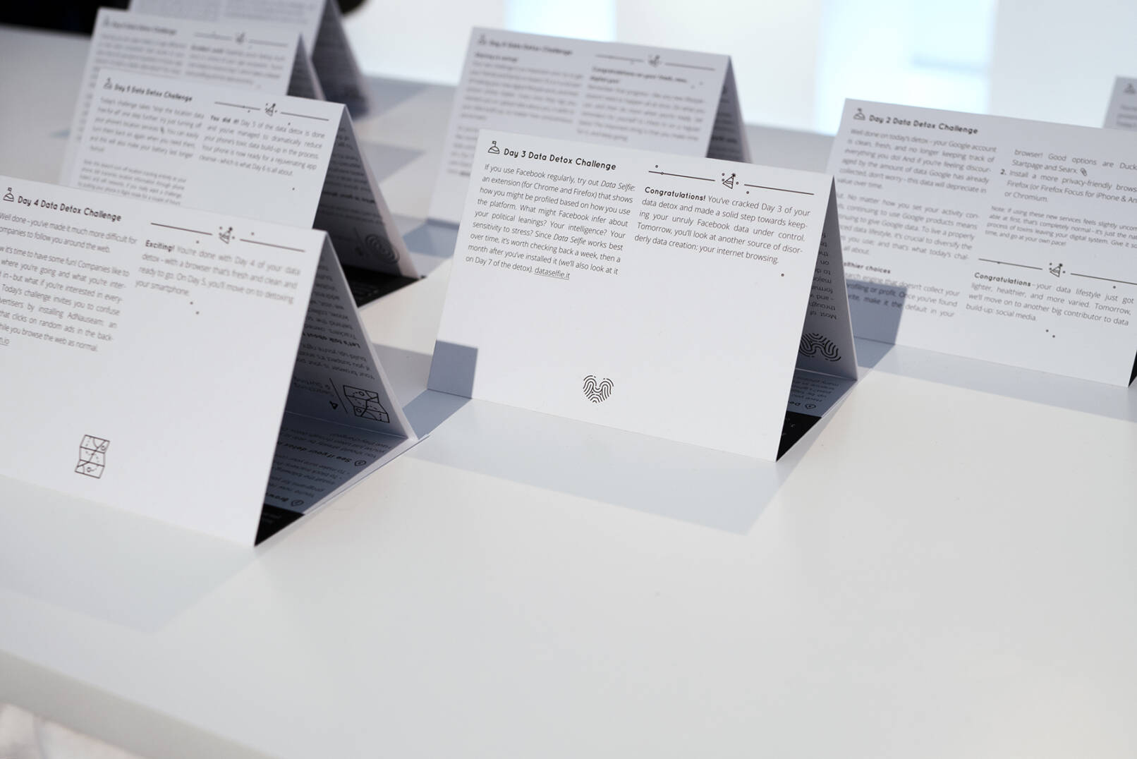 Das von Tactical Tech und La Loma entwickelte Data Detox Kit hilft dabei, das eigene digitale Selbst zu erkennen, bereits hinterlassene Spuren zu reduzieren und den künftigen Fußabdruck auf dem Weg durchs Netz zu verkleinern. Jede der kompakten Einheiten konzentriert sich auf eines von acht Tagesthemen wie „Sozial sein“, „Suchen und surfen“ und „Erschaffe ein neues Ich“. Konkrete Schritt-für-Schritt-Anleitungen werden von knappen Infotexten sowie von weiterführenden Challenges und Tipps begleitet.